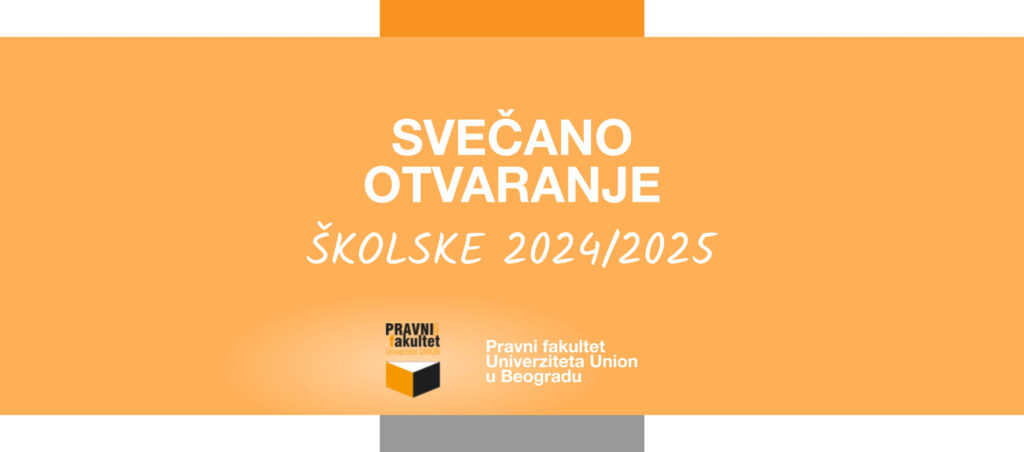 Pravni fakultet Univerziteta Union u Beogradu poziva studentkinje i studente upisane u prvu godinu Osnovnih akademskih studija i njihove roditelje na svečano otvaranje školske 2024/2025 godine koje će se održati u ponedeljak, 30. septembra 2024. godine u 12.00. časova u Velikoj sali Fakulteta.