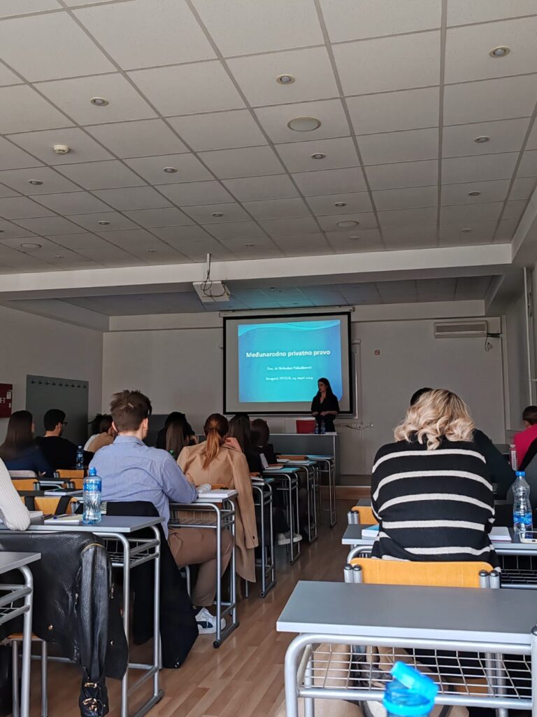 U okviru nastave na predmetu Međunarodno privatno pravo, 4. marta, advokatica Olivera D. Novaković održala je gostujuće predavanje na temu Boravak i radna prava stranaca u Republici Srbiji, iz aspekta primene prava u praksi, sa primerima iz svoje advokatske prakse.