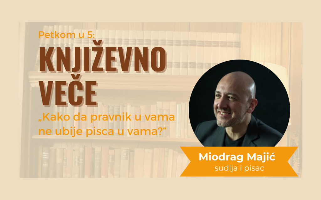 Na tribini Petkom u 5, 13.oktobra 2023. godine u Velikoj sali PFUUB, sudija Apelacionog suda u Beogradu, docent Pravnog fakulteta Univerziteta Union u Beogradu i pisac romana Deca zla, Ostrvo pelikana, Rudnik i zbirke priča U ime naroda dr Miodrag Majić, u razgovoru sa prof. dr Violetom Beširević otkriva kako sudija u njemu utiče na pisaca u njemu, kako bira inspiracije […]