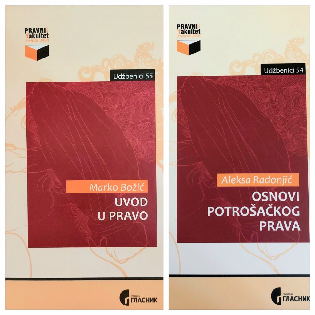 Sa zadovoljstvom obaveštavamo da su objavljena dva nova udžbenika nastavnika PFUUB: udžbenik Uvod u pravo prof. Marka Božića udžbenik Osnovi potrošačkog prava doc. Alekse Radonjića Takođe, objavljeno je i novo izmenjeno izdanje udžbenika Upravno pravo prof. Bogoljuba Milosavljevića. Udžbenici su dostupni u skriptarnici našeg fakulteta i u e-Knjižari.