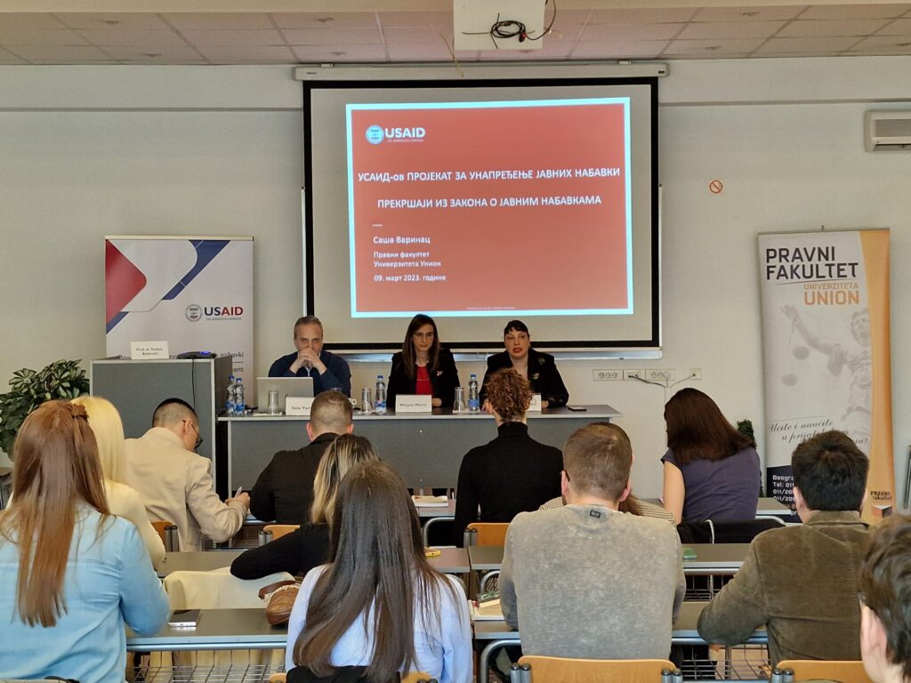 Pravni fakultet UUB i USAID organizovali su predavanje i radionicu za studente i studentkinje PFUUB o javnim nabavkama i prekršajnopravnim aspektima u ovoj sferi. Prisutni su 9. marta 2023. godine imali priliku da nauče kako se piše zahtev za pokretanje prekršajnog postupka za hipotetičke slučajeve prekršaja iz Zakona o javnim nabavkama. Predavači su bili Saša […]