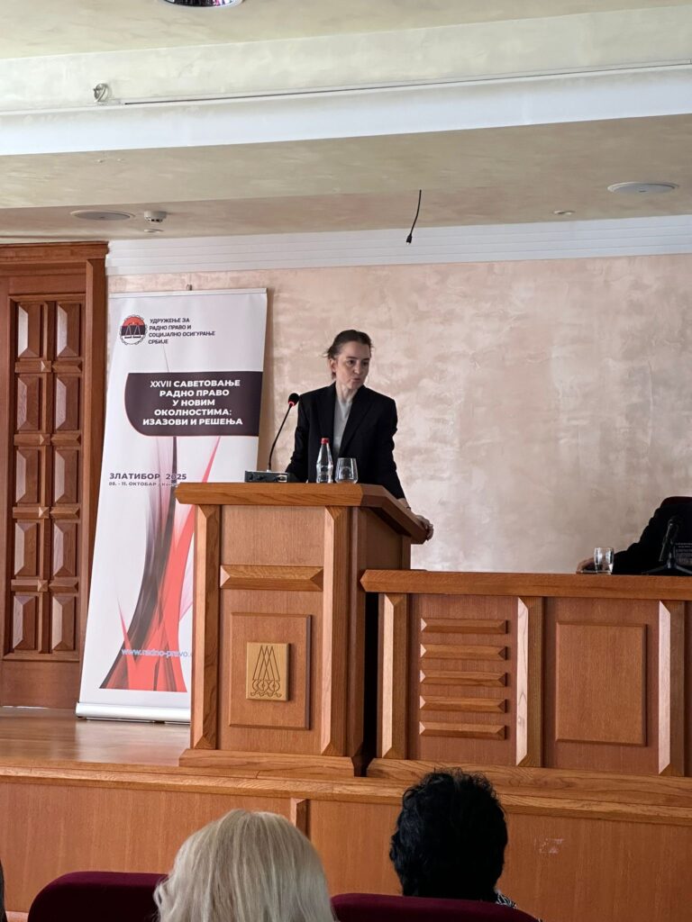 Na tradicionalnom savetovanju Udruženja za radno pravo i socijalno osiguranje Srbije, 9. oktobra 2025. godine doc. dr Mila Petrović predstavila je rad na temu „Šta je zaista od javnog interesa? Preispitivanje prava na štrajk u delatnostima od javnog interesa u Republici Srbiji.”