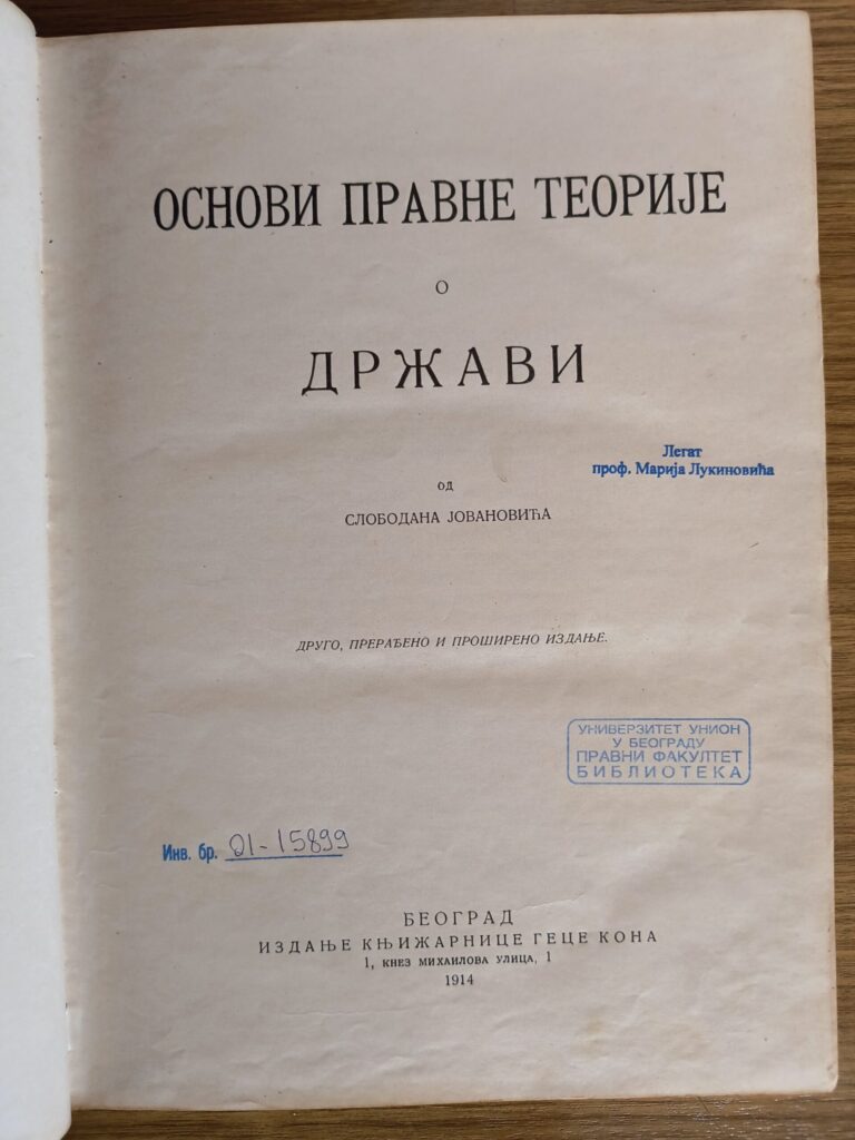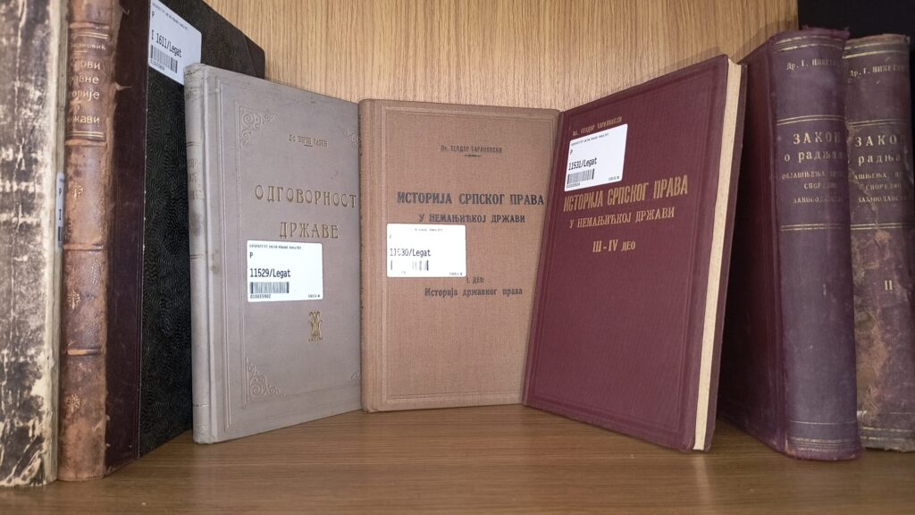 Zahvaljujući donaciji porodice prof. dr Marija Lukinovića, Legat prof. dr Marija Lukinovića je obogaćen vrednim antikvarnim knjigama iz oblasti prava. Ovi retki primerci ne samo da dopunjuju stručni fond Biblioteke, već su i deo kulturne i istorijske baštine srpskog pravnog izdavaštva.