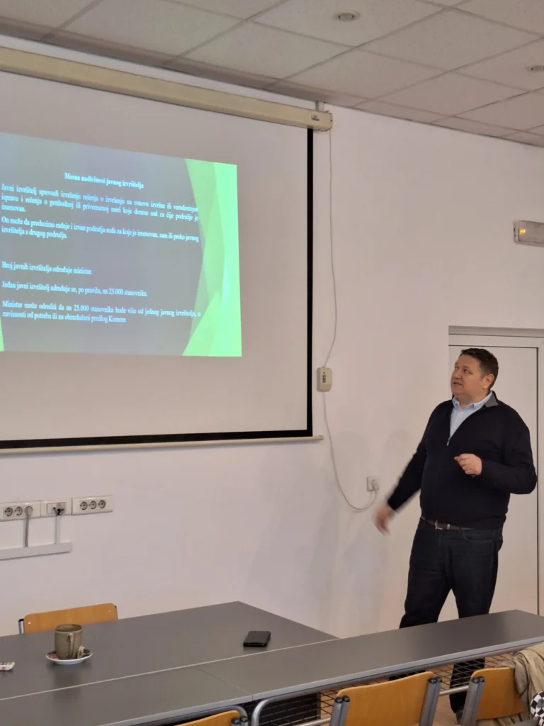 Studentima četvrte godine osnovnih studija PFUUB, gospodin Veselinović predstavio je profesiju javnog izvršitelja, uslove za imenovanje i ukazao na posebna ovlašćenja i dužnosti izvršitelja, kao i iskustva iz prakse.